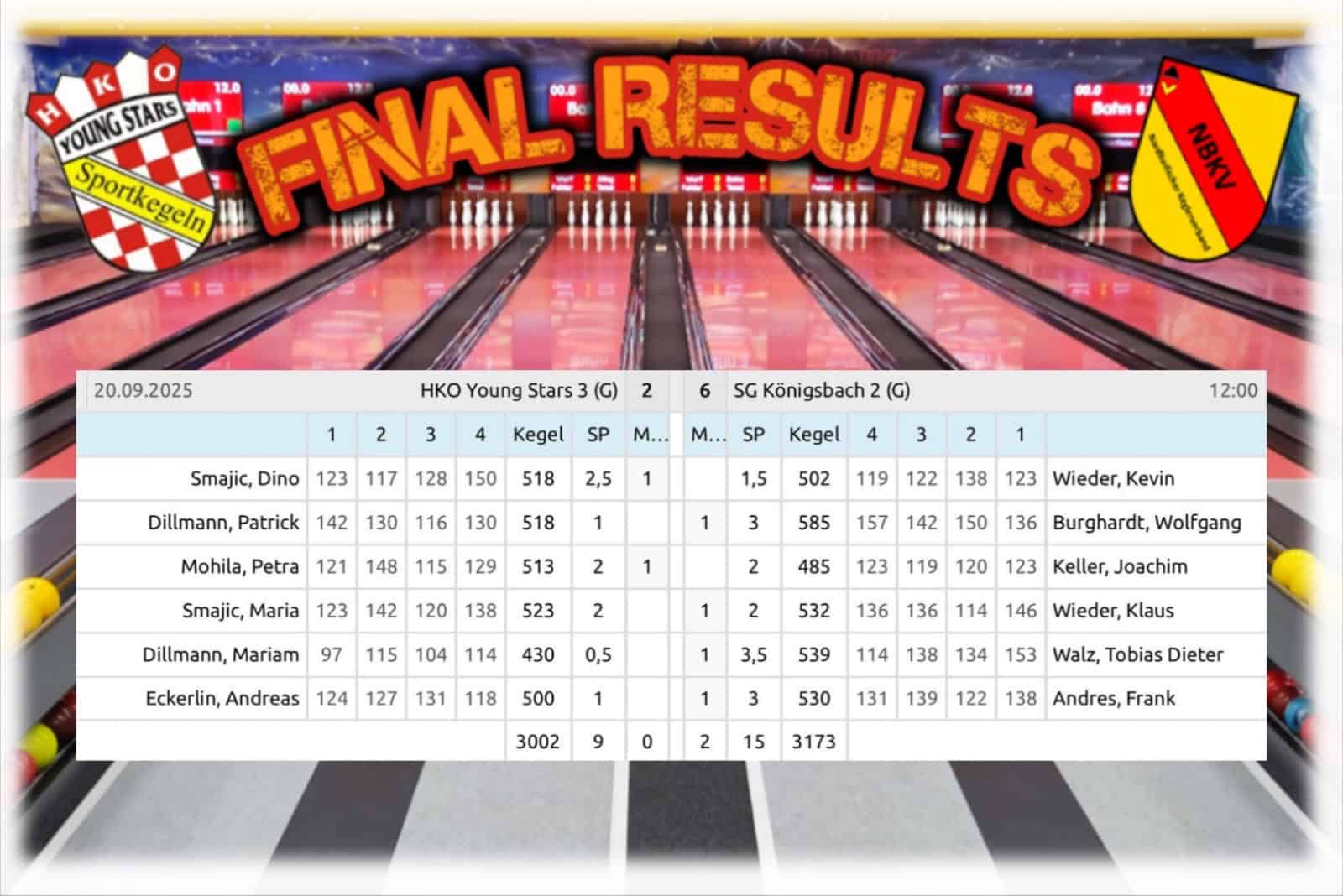 Im Lager der Young Stars konnte man dennoch ein positives Fazit ziehen, für die Mannschaftspunkte sorgten DINO (518) sowie Jugendspielerin PETRA (513). Sehr erfreulich war zudem auch das Ergebnis unserer weiteren Jugendspielerin MARIA (523).