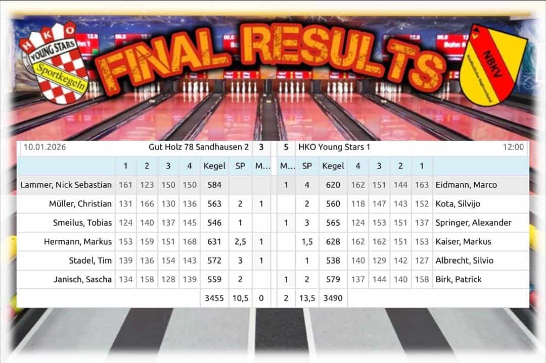 Zwischenstand zur Hälfte: 2:1 MP und 52 Kegel Vorsprung für die Young Stars.
