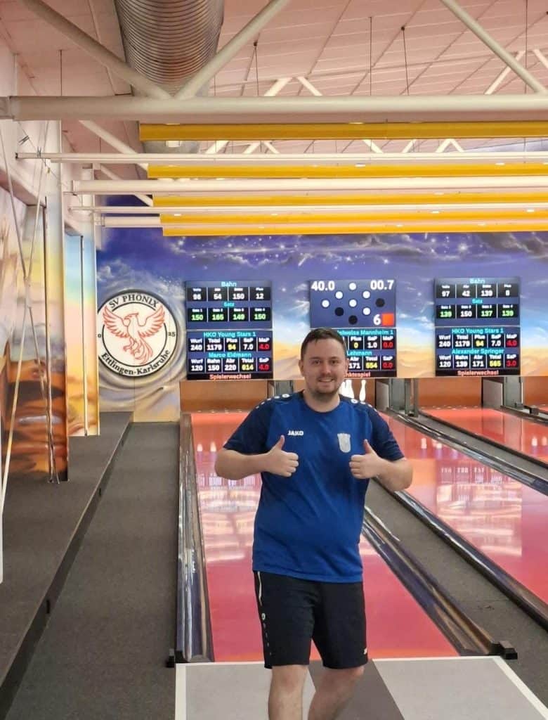 PATRICK startete starken 306 Kegel ins Spiel. Auf den zweiten 60 haderte er ein wenig. Mit 253 ließ er ein besseres Ergebnis leider liegen und musste seinem Gegner letztendlich mit 1:3 SP und 559:607 den MP überlassen.