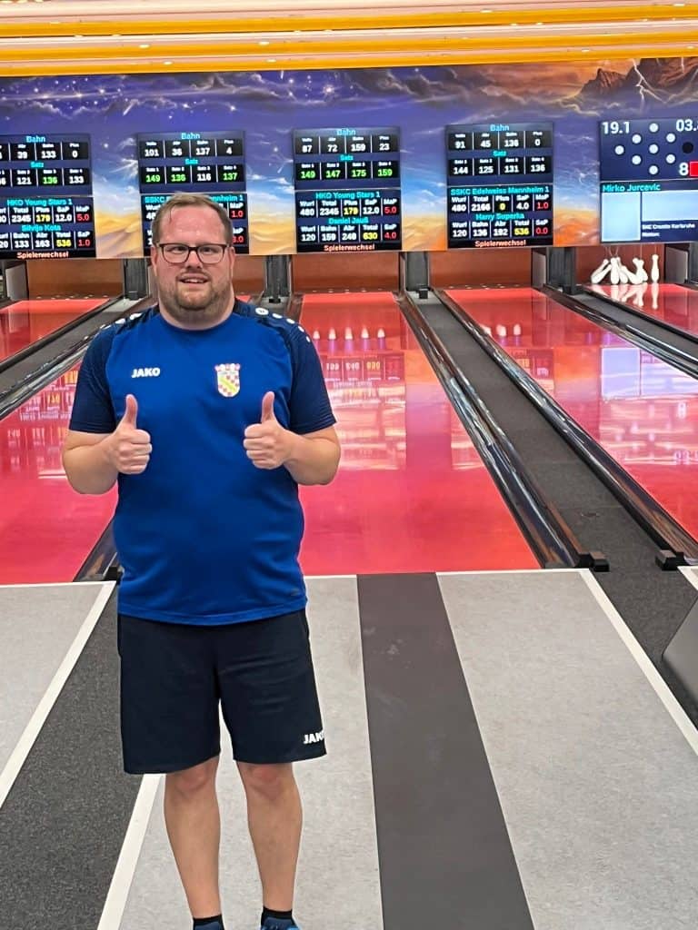 MARKUS musste die ersten zwei Durchgänge seinem Gegner überlassen, konnte aber den dritten Satz knapp für sich entscheiden. Mit der letzten Kugel sicherte Markus doch noch mit starken 601:600 Kegel und 2:2 SP den MP.
