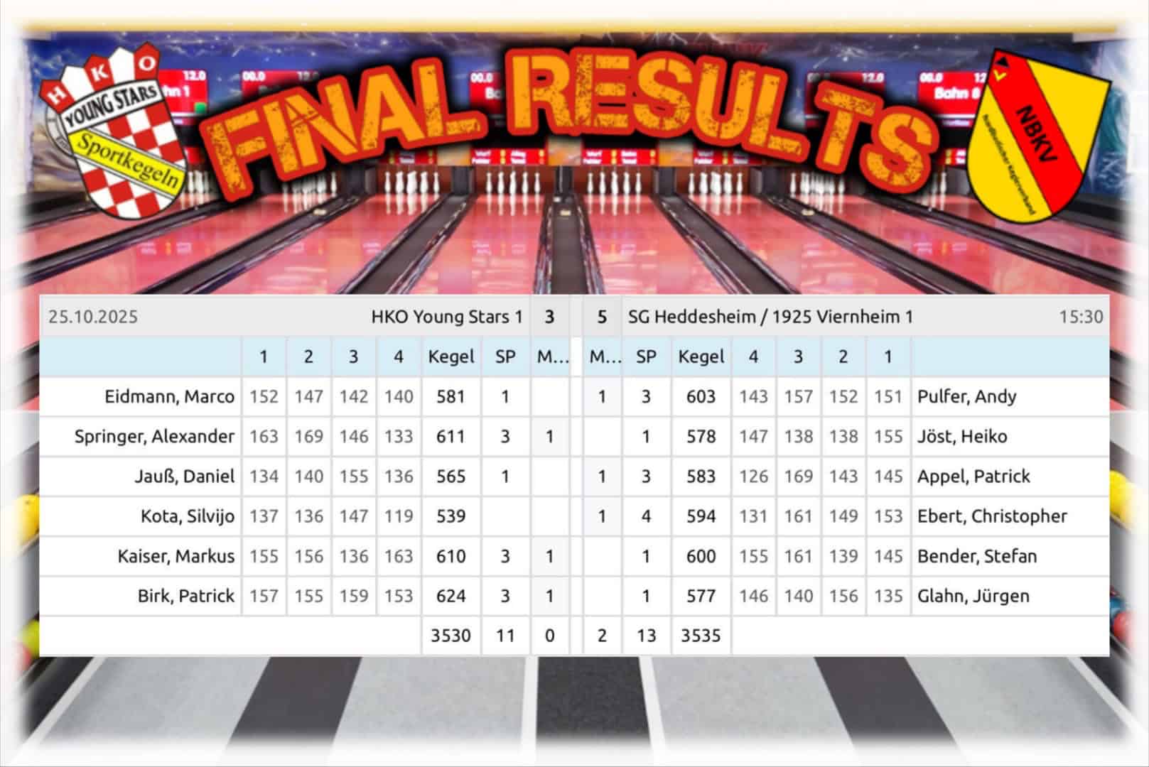 Der letzte Wurf entschied das Spiel ĂŒber Sieg oder Niederlage. RĂŒckstand fĂŒr die Young Stars -3 Kegel.
