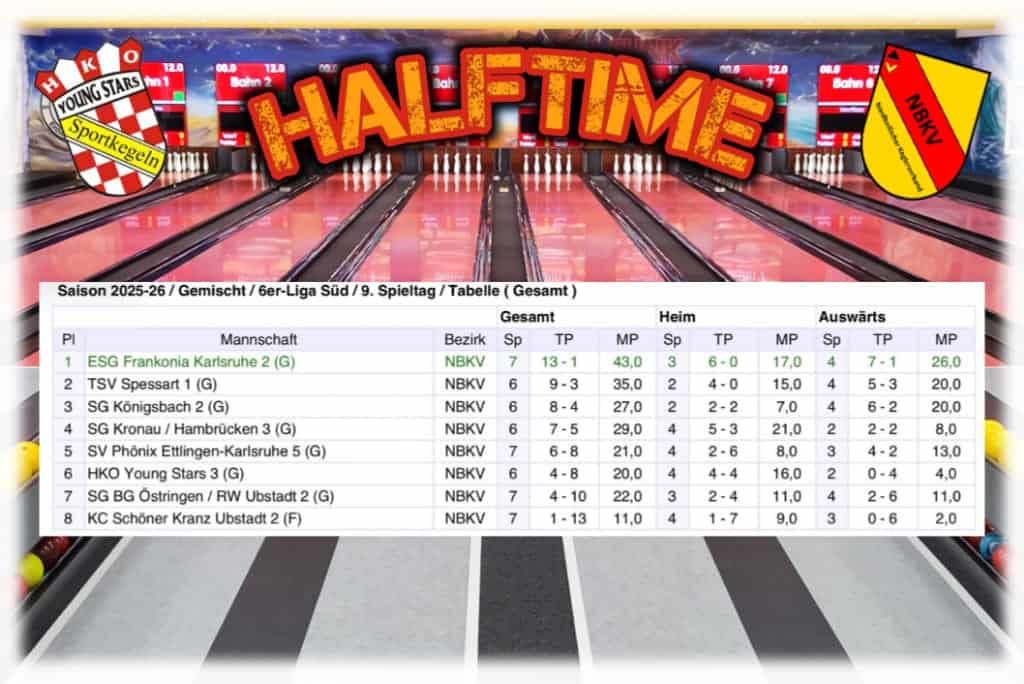 In der Hinrunde der Saison 2025/2026 konnte unsere DRITTE zwei Siege gegen direkte Konkurrenten feiern. Zudem ist es bemerkenswert wie unsere Jugendspielerinnen und Jugendspieler, sowie unsere NeuzugĂ€nge immer bessere Ergebnisse erzielten. Hierbei beendet die DRITTE die Hinrunde mit 4:8 Punkten auf dem 6. Tabellenplatz der 6er-Liga SĂŒd Gemischt und versucht im neuen Jahr weitere Punkte zu sammeln.