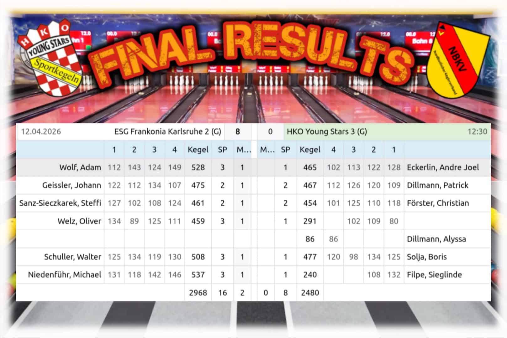 Dennoch konnten sich vier Zahlen auf den nicht leicht bespielbaren sehen lassen, Youngster André (465), Boris (477), Patrick (467) sowie Christian (454).